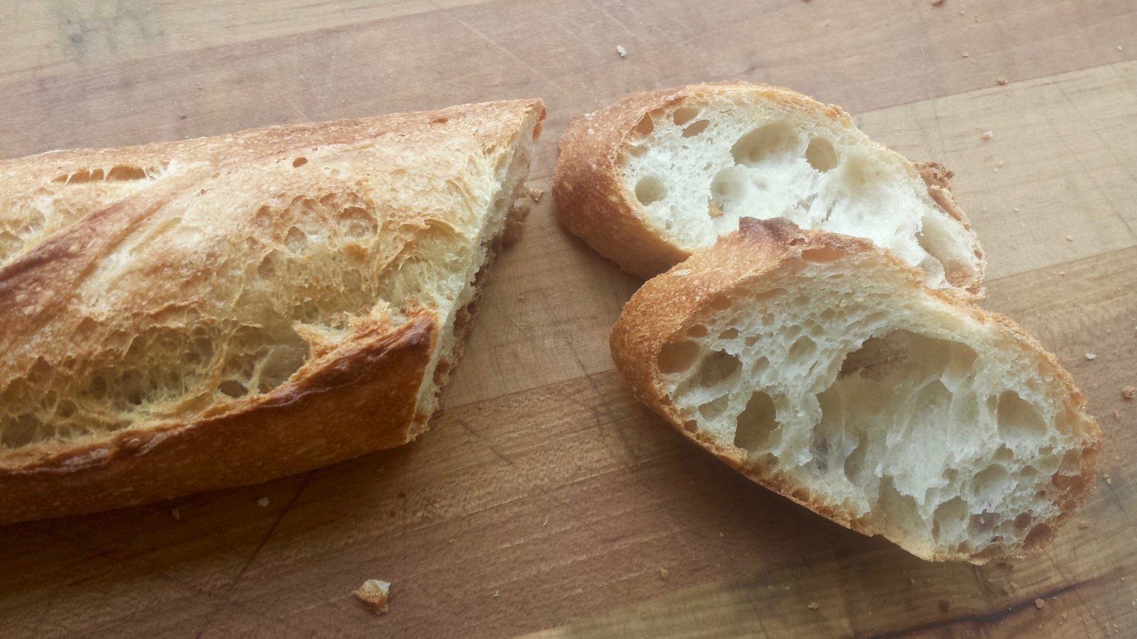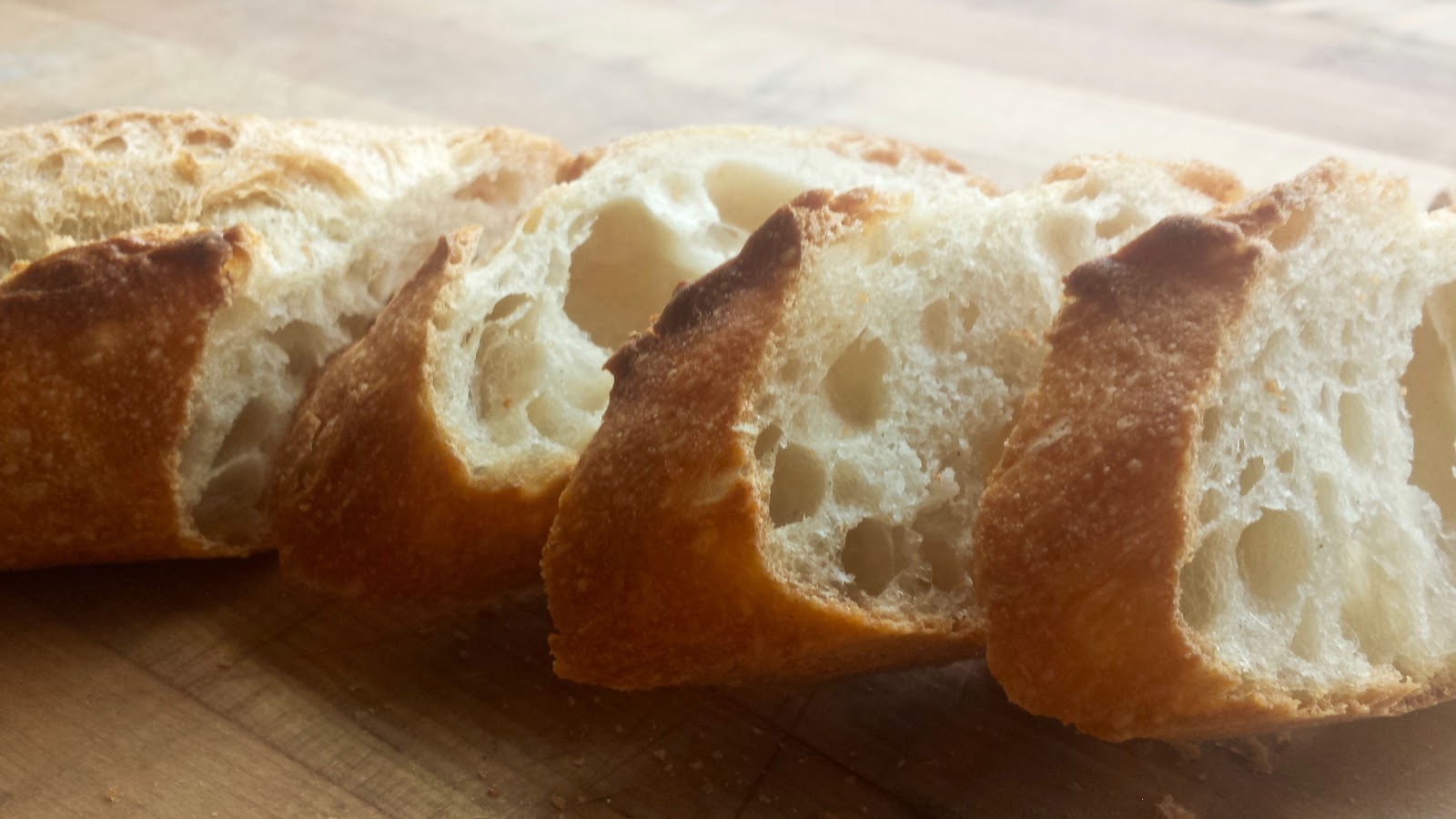 Our mush made of Carolina Gold rice flour and the poolish made of rice flour and toasted rice flour, created a dough that bakes into a moist, slightly sweet, and aromatic baguette. It’s best baked with some color to complement the moist and tasty crumb.