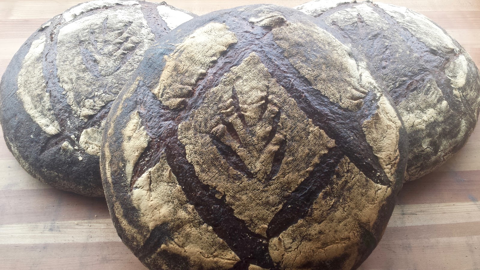 Country Miche is a sourdough bread but the sourdough isn’t the dominant flavor that you taste. You can taste a delicious combination of grains and it has a deep caramel like finish due to baking with a super dark crust. We’ve been baking them in 2-kilo loaves as they would have been baked a couple of centuries ago. Even with the dark bake, they remain moist and flavorful for far more than a week.