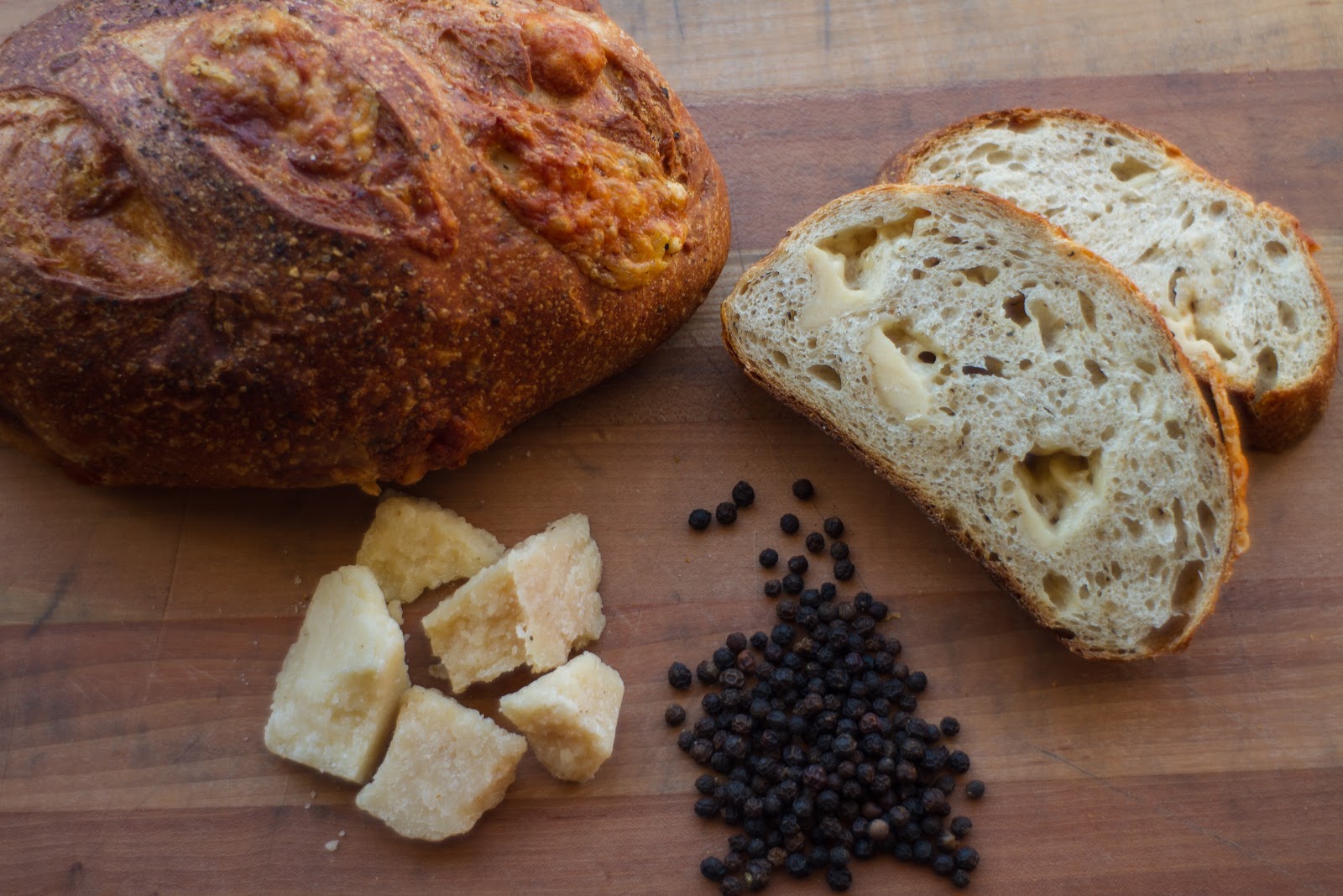 Just like there are varieties of olive oil, there are a whole range of Parms. Two of our partners, Ari and Grace, flew to Italy to taste and select batches of Parmigiano Reggiano for different uses at Zingerman’s—we really do go the extra mile for full flavor! The lucky cheese chosen to star in our beloved Parmesan Pepper Bread is initially the Roncadella Parmigiano Reggiano, aged 12 months. (Due to limited availability of these cheeses we’ll likely have the opportunity to try baking this bread using other Parmigiano Reggianos from other dairies in the future.)